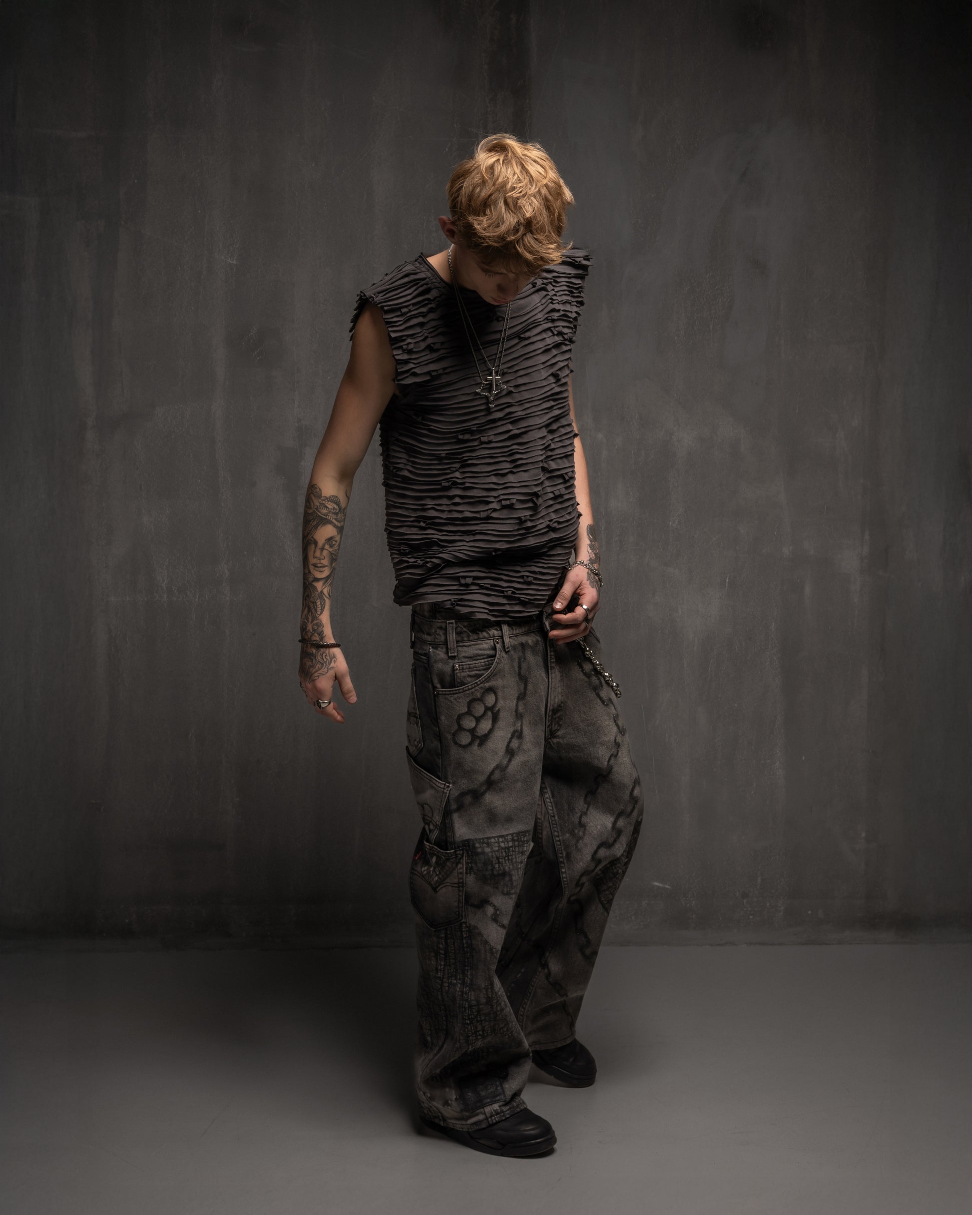 We use a custom VNDL Sizing System designed to prioritize inclusivity and support all body types. Our genderless size chart is based on precise body measurements for a tailored fit.